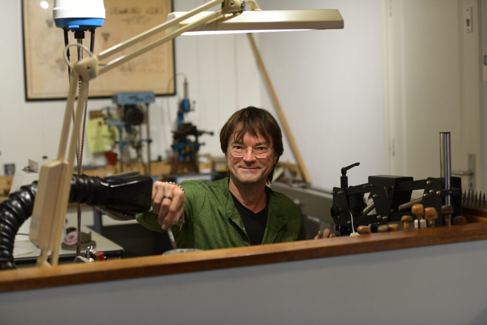 Bij binnenkomst in het gezellige atelier ziet u het al… Hier wordt gewerkt! In het open atelier heeft iedereen direct zicht op de werkbanken en het gereedschap, en bij ontvangst zijn zwarte werkhanden meer regel dan uitzondering.