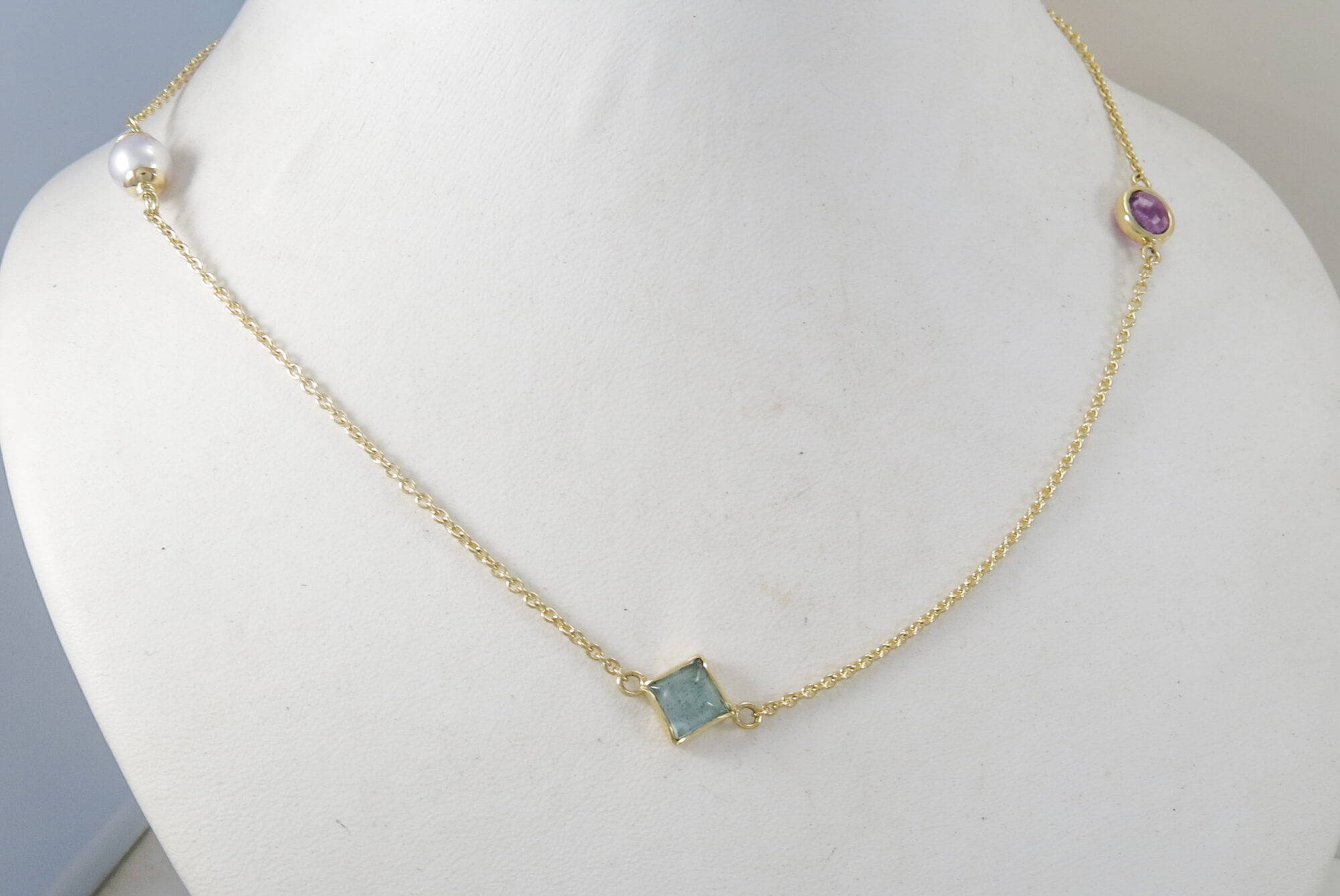 goud collier kleurstenen en parel