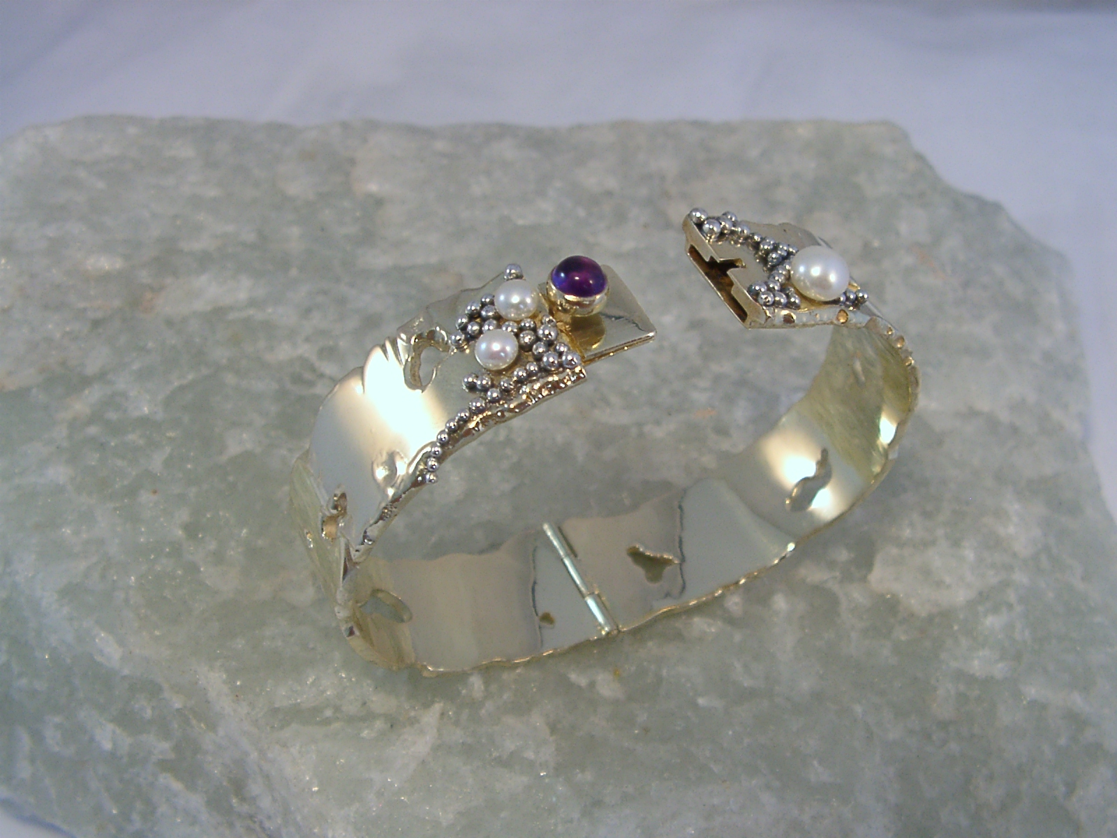 gouden armband parels amethist