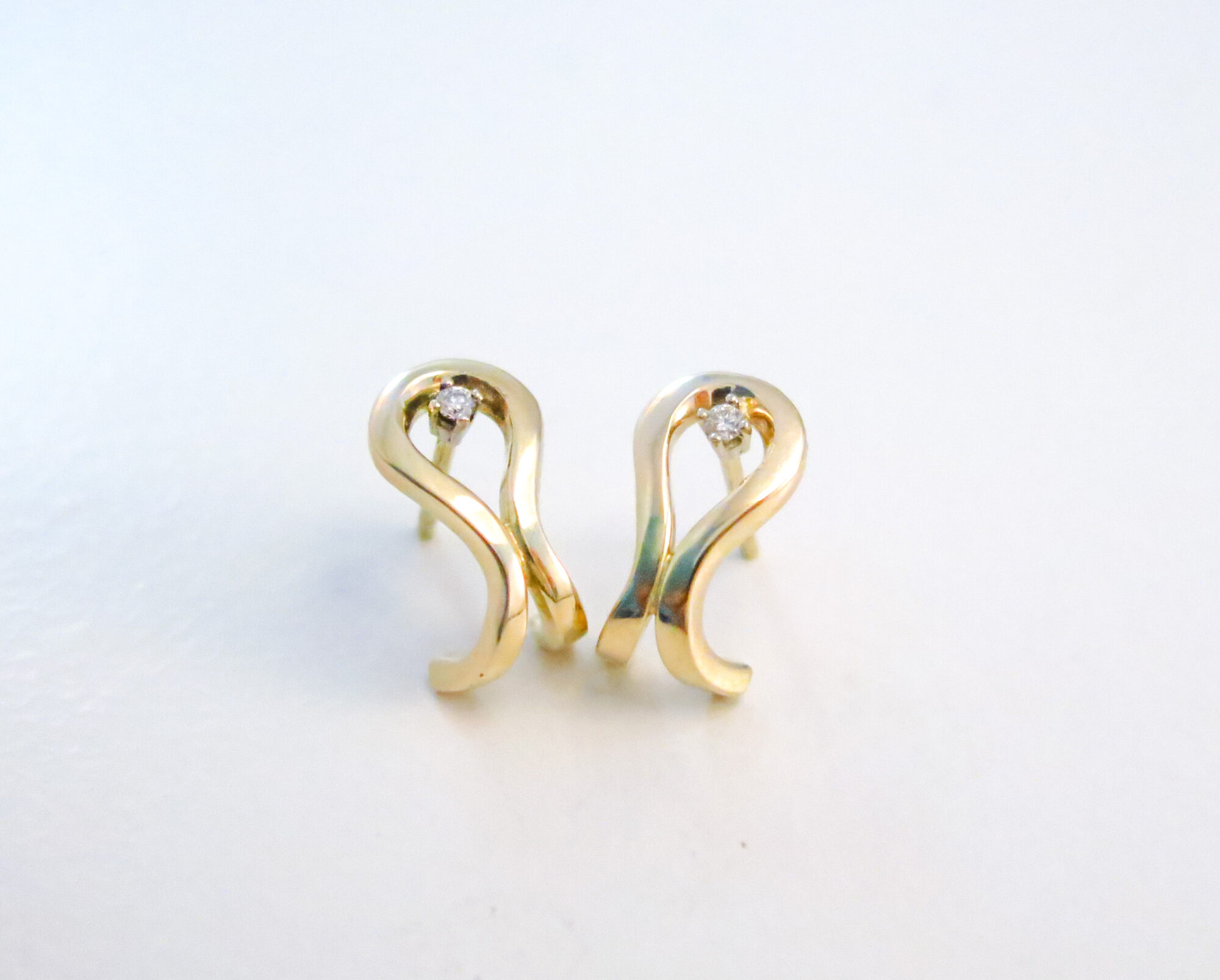 gouden oorbellen krul met diamant