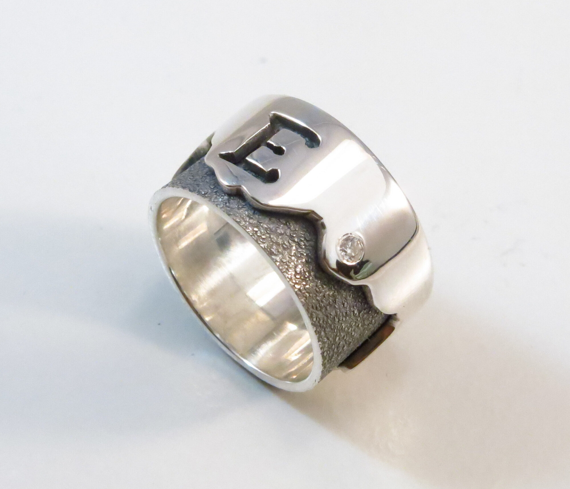 stoere zilveren damesring met letter