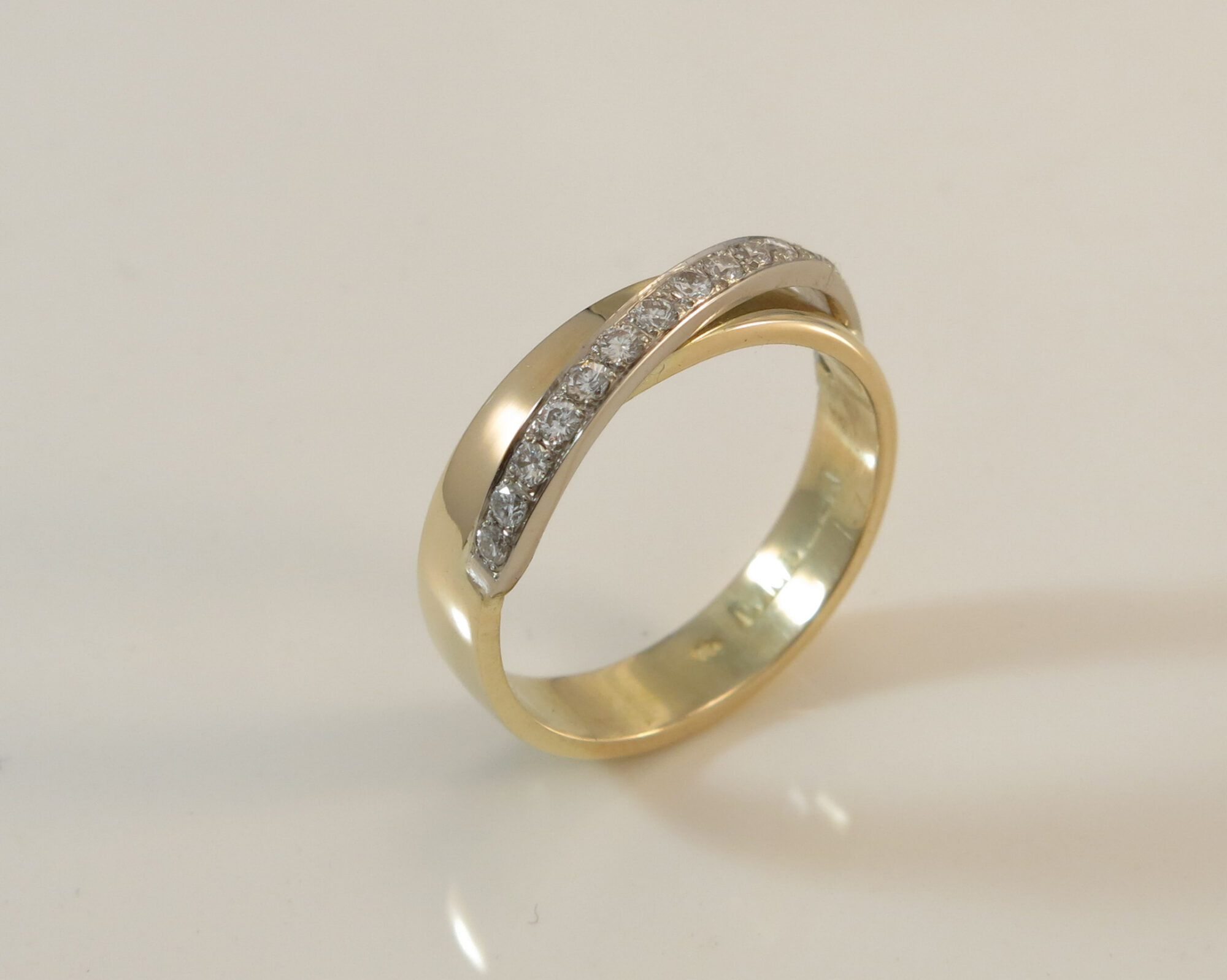 trouwring met witgoud plaatje met briljant