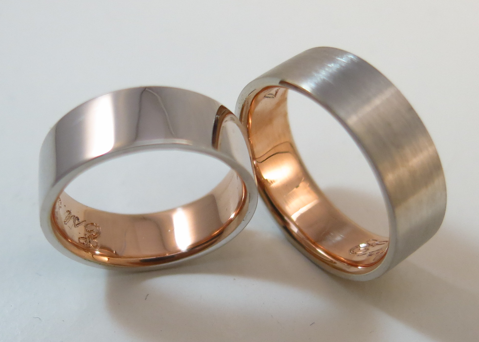 Trouwringen wit en roodgoud mat