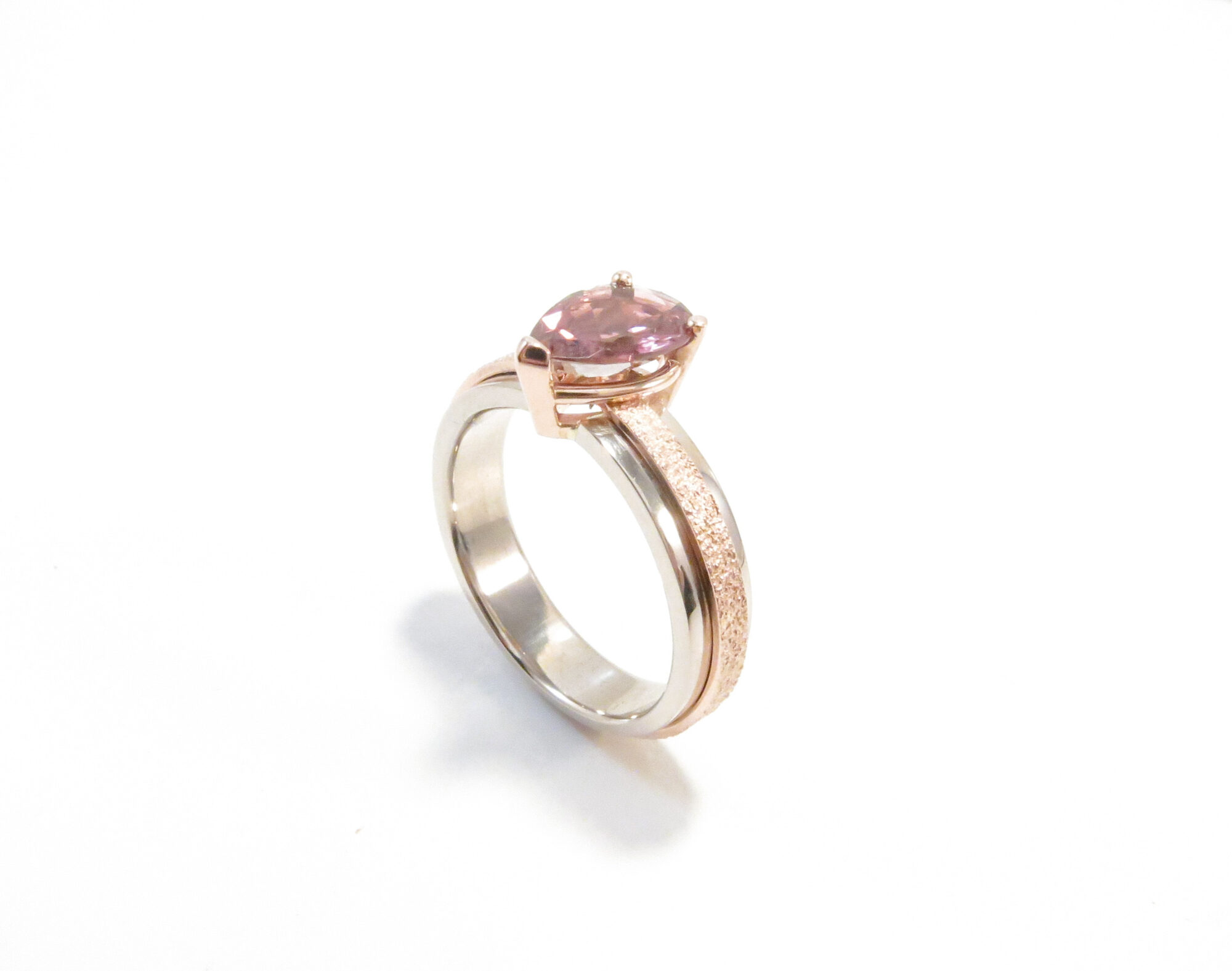 wit/ roodgouden ring met roze toermalijn