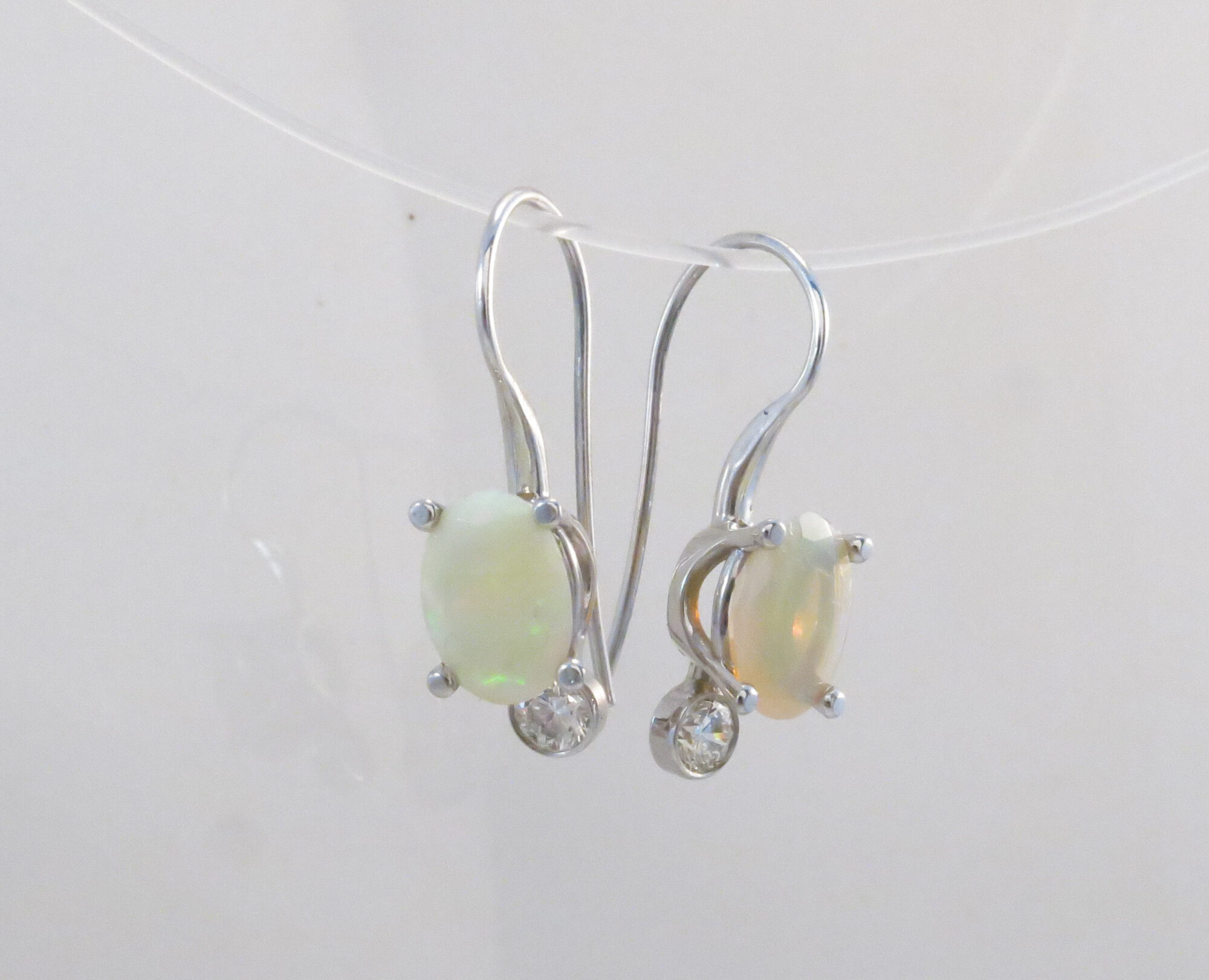 witgouden oorhangers opaal en diamant