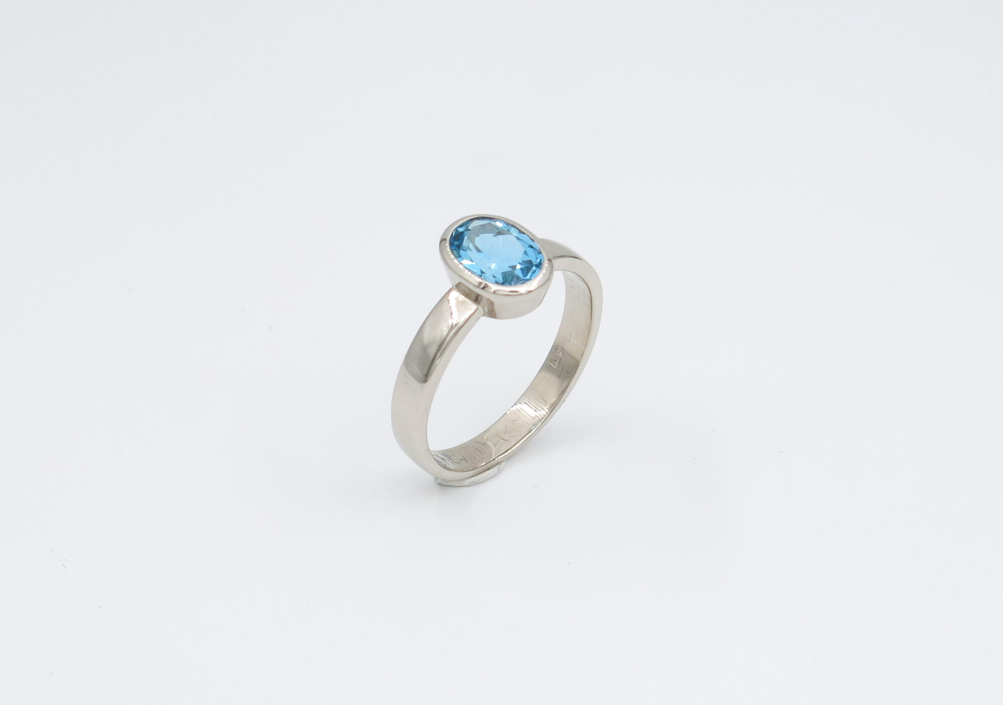 witgouden ring met blauw topaas
