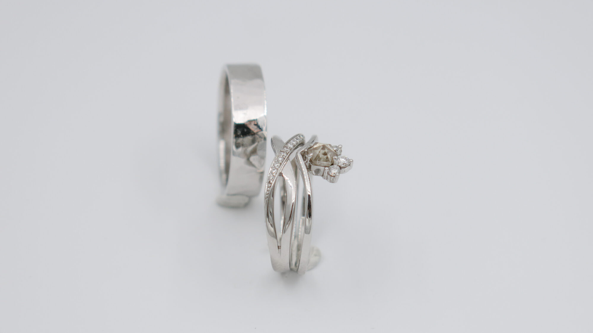 witgouden trouwringen. Damesring met salt/pepper diamant