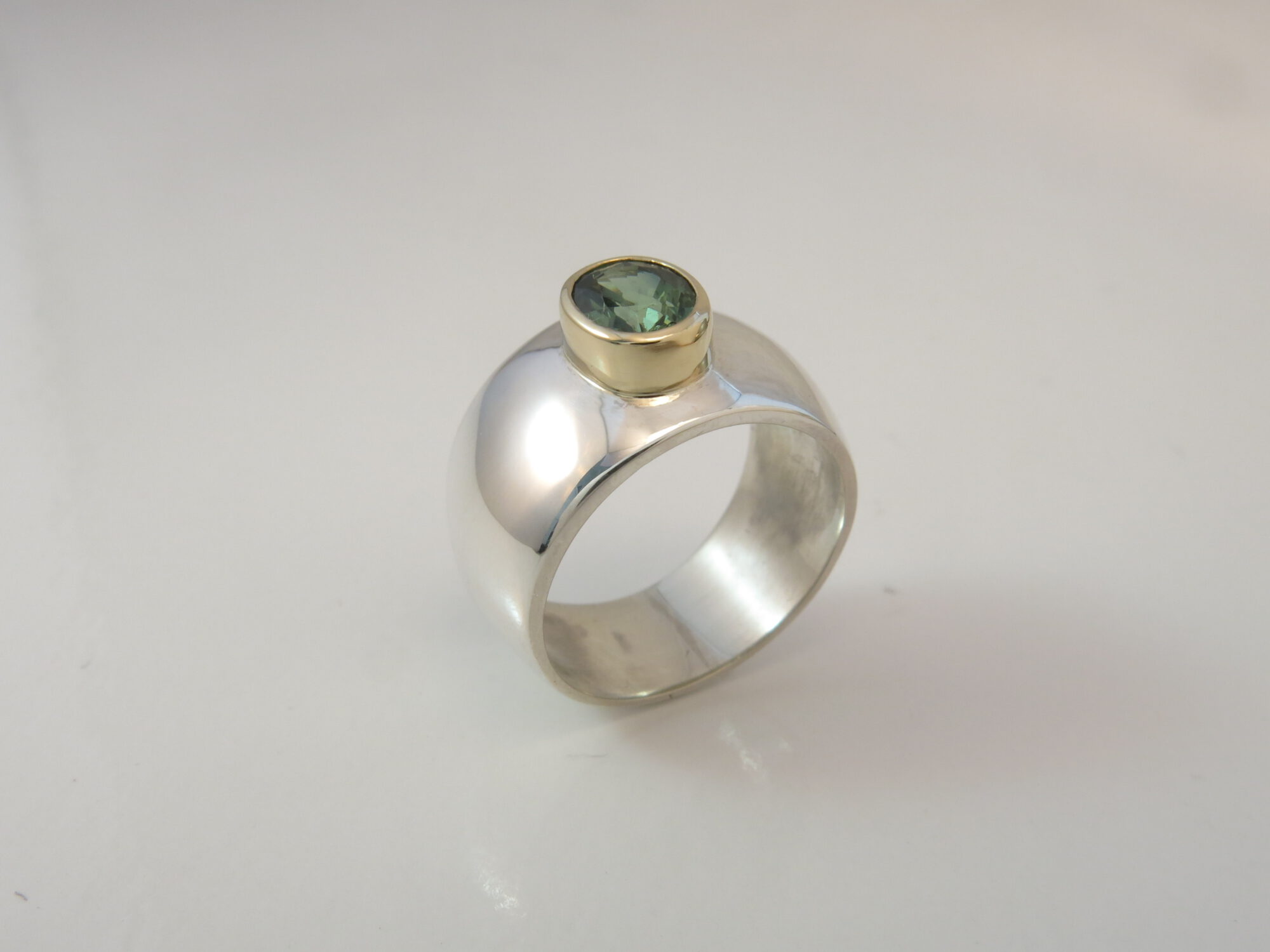 zilveren ring met gouden kast en tourmalijn